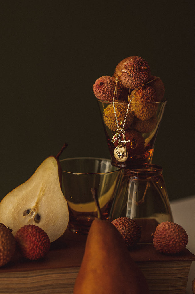 Piece measures approximately 21mm x 18mm, bail included. Compatible with our Capsule Collection.