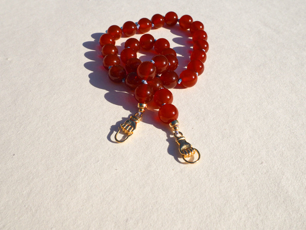Carnelian beads sourced from a Fairmined and ethical gem dealer in rural China. Each piece is handmade using natural materials. Minor variances may occur.