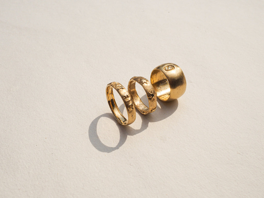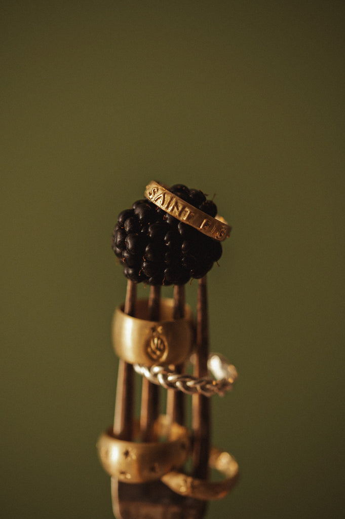 A deliciously thick cigar band with a delicate hand carved into the center. Polished to a satin finish.