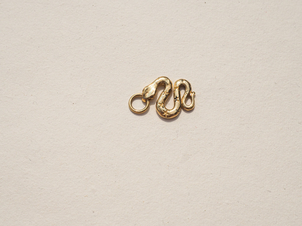 A writhing snake with intricately carved stars biting a circle of infinity. Its tail creates a close loop on the opposite end for connector attachments