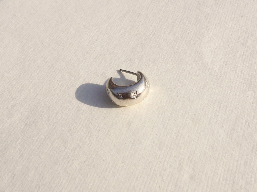 Our signature dome with hand-carved stars, in hoop form. Make a match with our signature Stella Dome Ring.