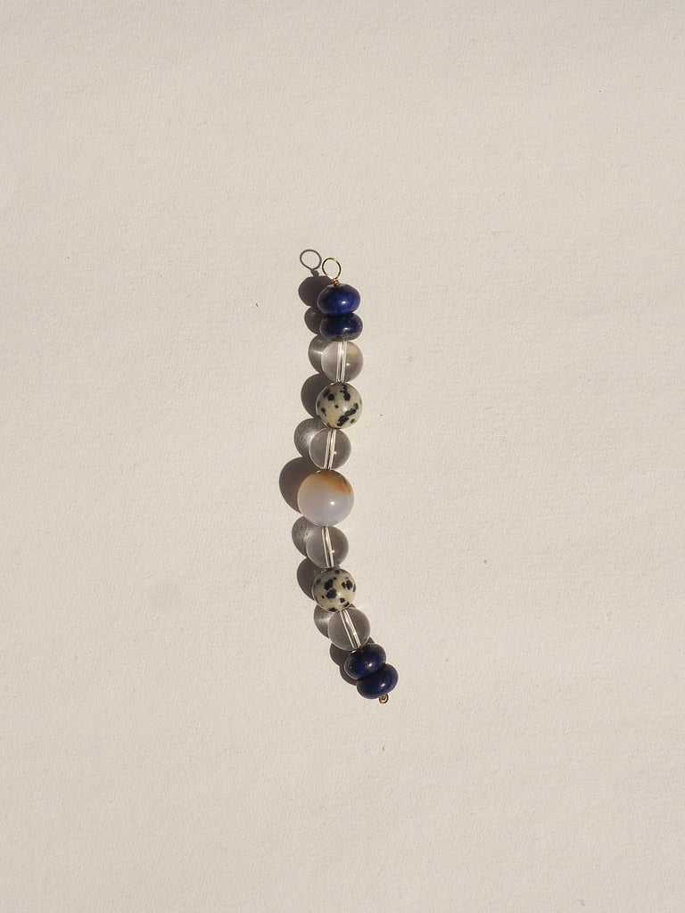 Clear Quartz, Lapis & Dalmatian Agate: A trio of translucence, depth, and pattern; the beads alternate between polished opacity and flecked transparency, a small landscape of contrasts.