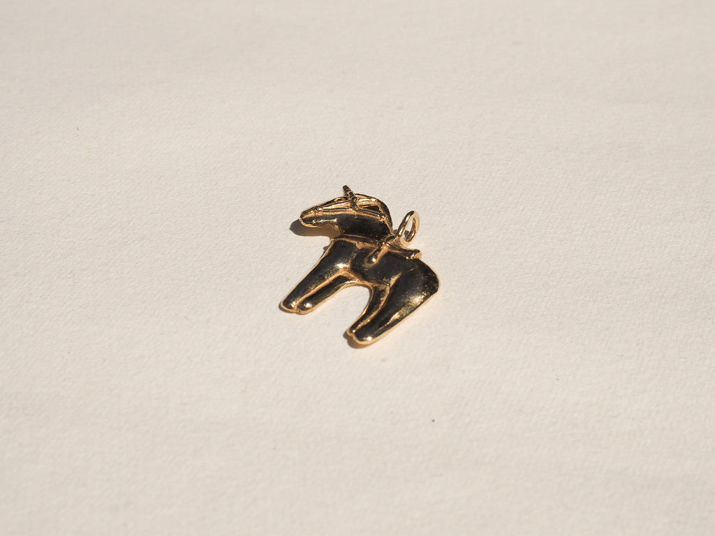 This compact, abstracted horse draws inspiration from early Japanese netsuke and the architectural silhouette of the Trojan horse. Rendered with simplified lines and a slightly off-kilter stance, the piece occupies a space between artifact and fable. It’s an emblem of mischief and myth — a small figure carrying centuries of story.