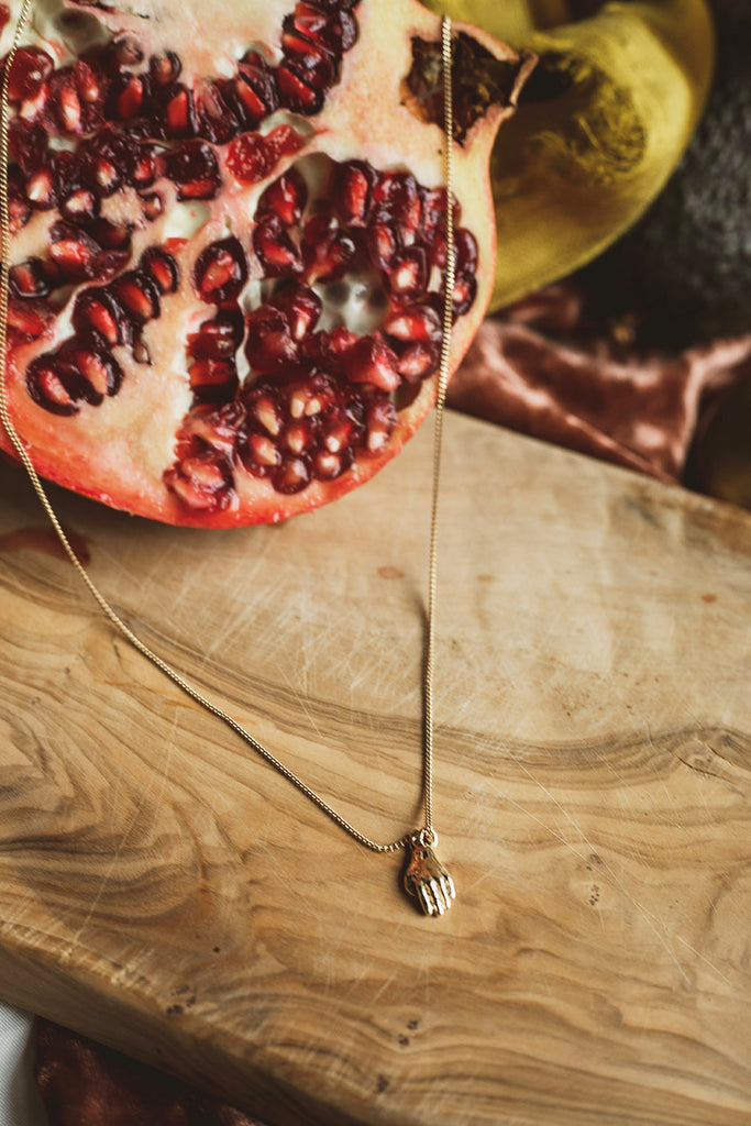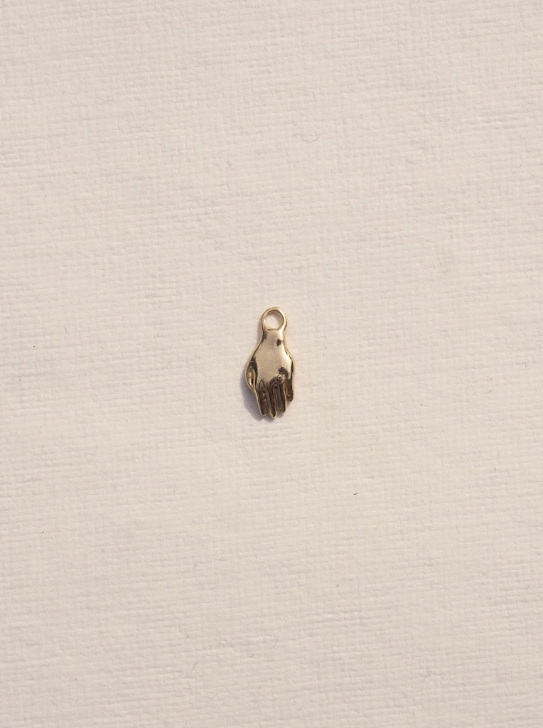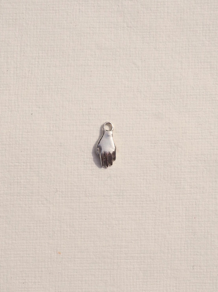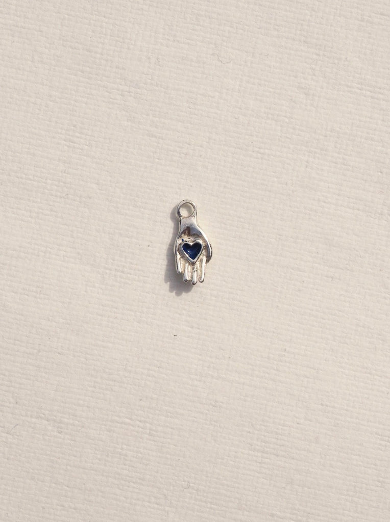 Our hand charm with a small enamelled heart in the center as a humble offering of vulnerability and devotion.